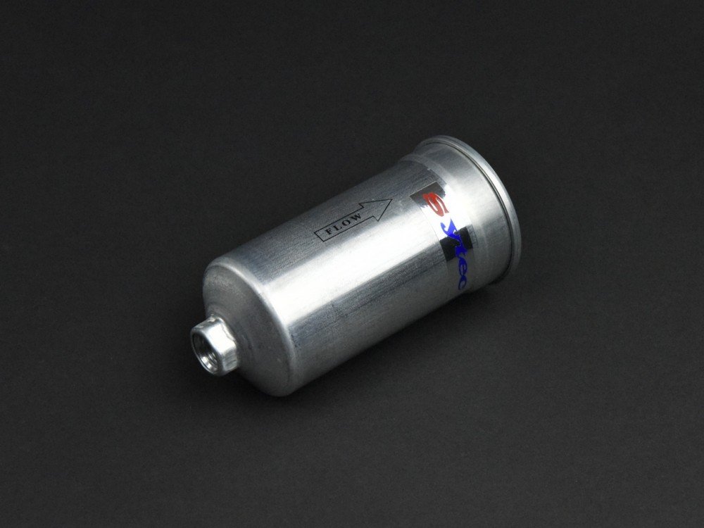 Filtre à essence aluminium avec entrée et sortie à visser.