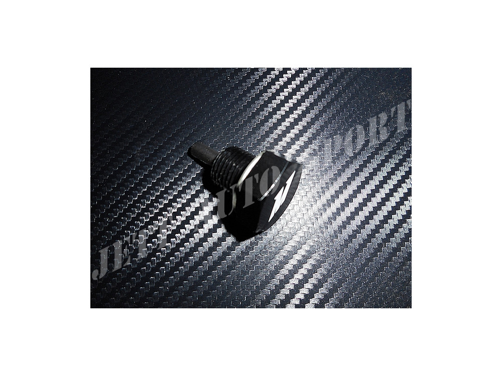 Bouchon aluminium anodisé noir pourvu d'un aimant pour récupérer les éventuelles particules métalliques.