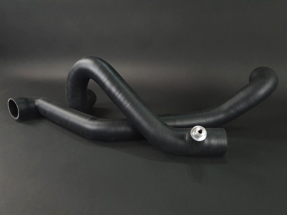 Kit composé de 2 durites en silicone noir mat, spécifique pour Renault 11 Turbo phase 1. Aucun piquage sur la durite de l'échangeur au carburateur et une prise pour visser le pressostat de sécurité sur celle allant du turbo à l'échangeur.
