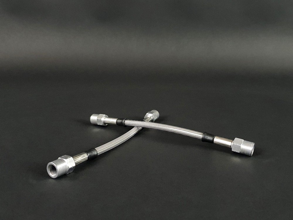 Paire de flexibles de frain arrière type aviation (inox tressé) pour Megane 2 RS toutes versions.