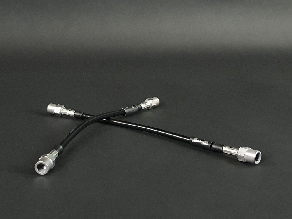 Paire de flexibles de frein arrière type aviation gainés noir ( et donc homolgués contrôle technique ) pour Gt Turbo, Clio 16S et Williams