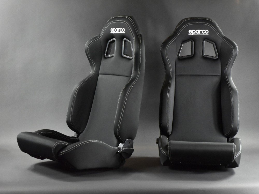 Offre spéciale pour cet ensemble de 2 sièges baquets du fabricant italien Sparco, modèle R100, évolution MY22 en tissu noir (disponible sur demande avec liseré bleu, rouge ou gris, édition spéciale Martini Racing ou encore en simili-cuir noir). Ergonomie améliorée par rapport au R100.