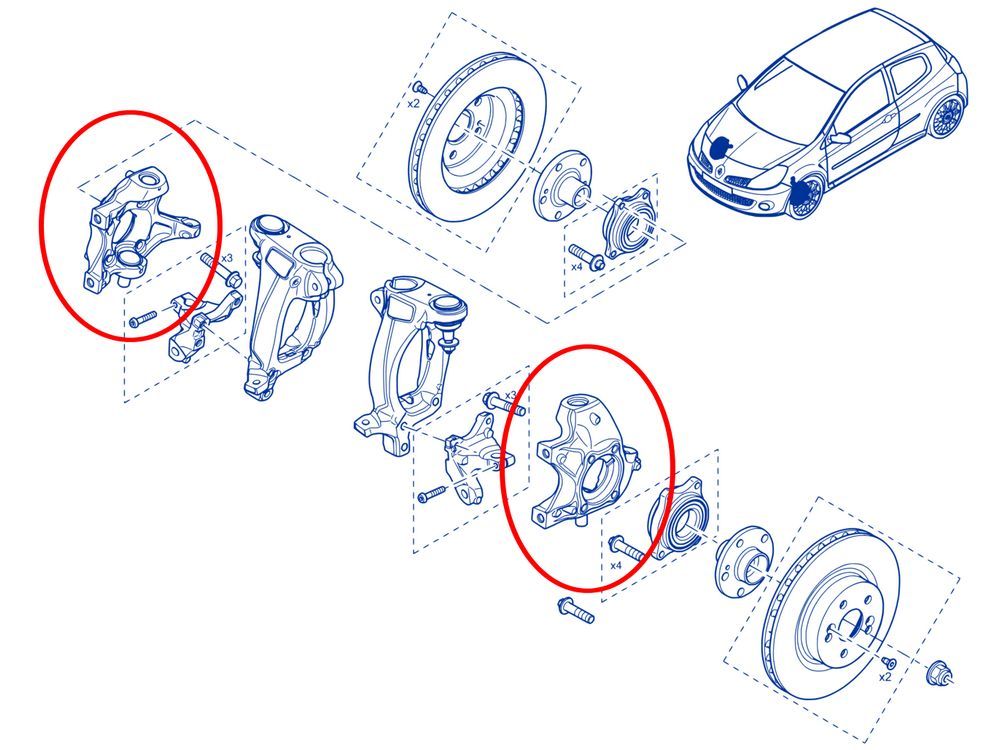 Porte-moyeu neuf et d'origine pour Clio 3 RS toutes versions. Gauche (conducteur) ou droit (passager) au choix dans le menu déroulant.
